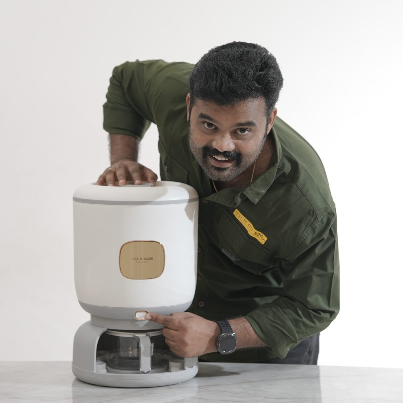 • Rice Dispenser Cup: Comes with a measuring cup featuring scale markings, a filter lid, and an ergonomic handle for precise pouring. The oblique bottom design ensures smooth flow and reduces waste.